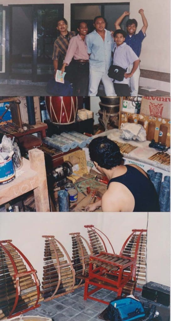 Throughout my world travels I always made a point of including instrument makers as an integral part of my field studies. While in Yogyakarta I visited the family of Joan Suryanaga and Suhirjan, Gamelan makers. I later commissioned a Bronze Pelog Gamelan for the Canberra School of Music – ANU to add to the Slendro Gamelan on loan, creating the ability to offer Gamelan as part of the schools world music program. I mentored Gamelan at the ANU School of Music for until 2012. Below is a photo of a Gamelan workshop I presented to young people at the Groove Warehouse in 2020.